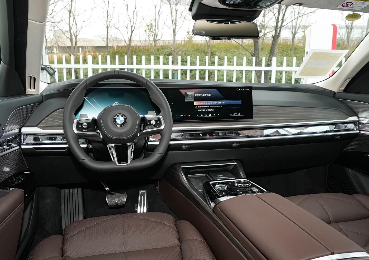 进入车内,全新宝马7系的内饰主打“奢享级座舱”理念,采用极简设计风格,同时融入大量高端材质与先进科技,彻底摆脱了传统豪华车的沉闷感,兼顾豪华质感与实用性。中控台采用对称式布局,配备12.3英寸数字仪表盘+14.9英寸中央触控显示屏组成的一体式悬浮双连屏,搭载最新的BMW iDrive 8车机系统,支持语音控制、OTA升级、AR实景导航、5G互联等功能,操作流畅,响应迅速,同时保留了部分常用物理按键,空间表现上,得益于3215mm的长轴距,车内空间极为宽敞,采用4门5座布局,重点优化后排乘坐体验。