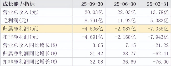 财报表明,用友网络2024年净利润为-20.61亿元,呈现亏损状态。2025年的前三个季度归母净利润分别为-7.358亿元、-2.087亿元、-4.536亿元,呈现持续亏损。